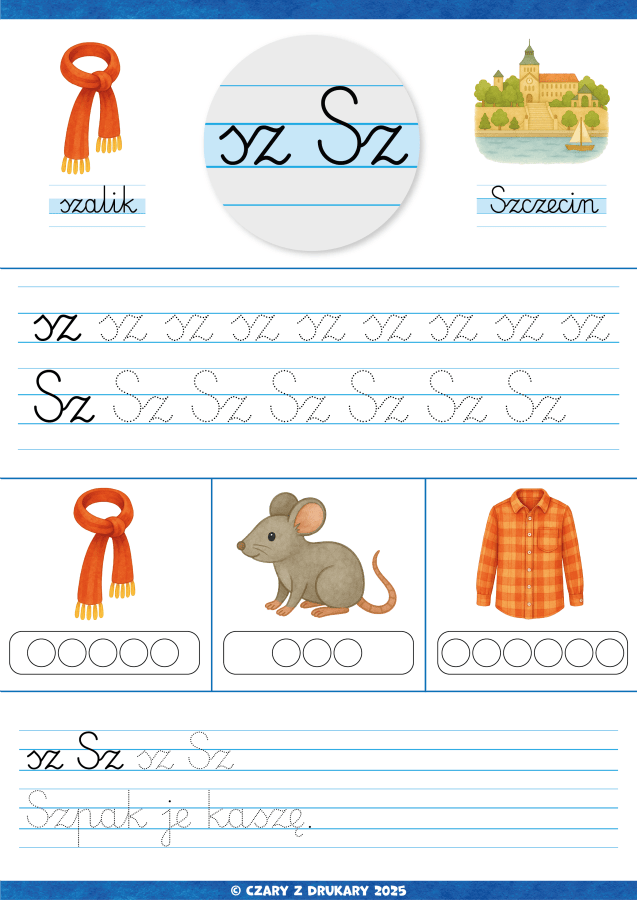 44 karty pracy (wszystkie litery alfabetu + dwuznaki)