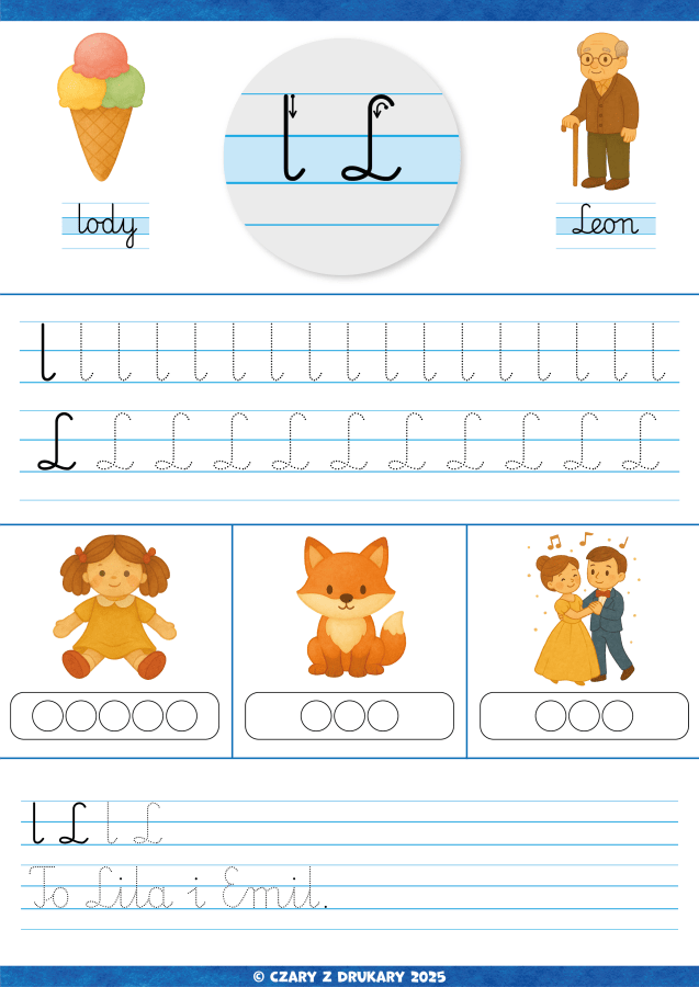Zestaw kart pracy doskonalących umiejętność pisania.